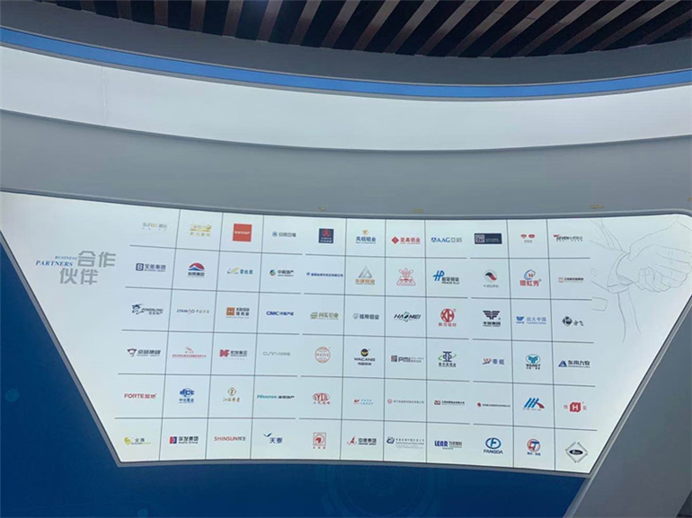 公司展廳設計,高端科技,大面積采用軟膜材料,做出大面積異形造型,結構木工工藝施工落地,相輔相成,再暗藏燈光創(chuàng)造氣氛。公司發(fā)展歷程介紹、公司合作客戶展示墻、公司產(chǎn)品系列展示墻,全部采用軟膜布噴繪制作而成,結合LED燈光呈現(xiàn)出效果,明亮醒目,又是異形的,格派十足,看點豐富。案例這種展示空間,深圳文化墻設計公司可一站式搞定。